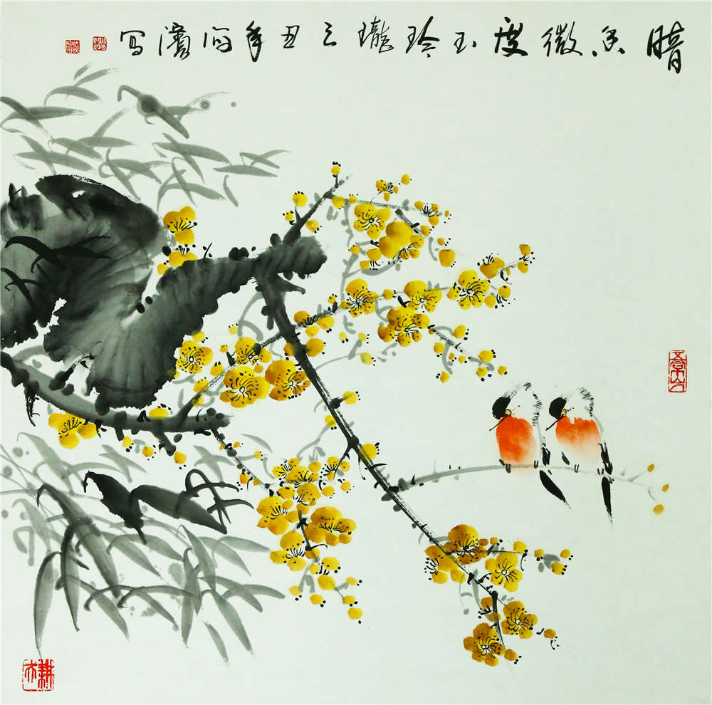 梅花小鸟四条屏(3)