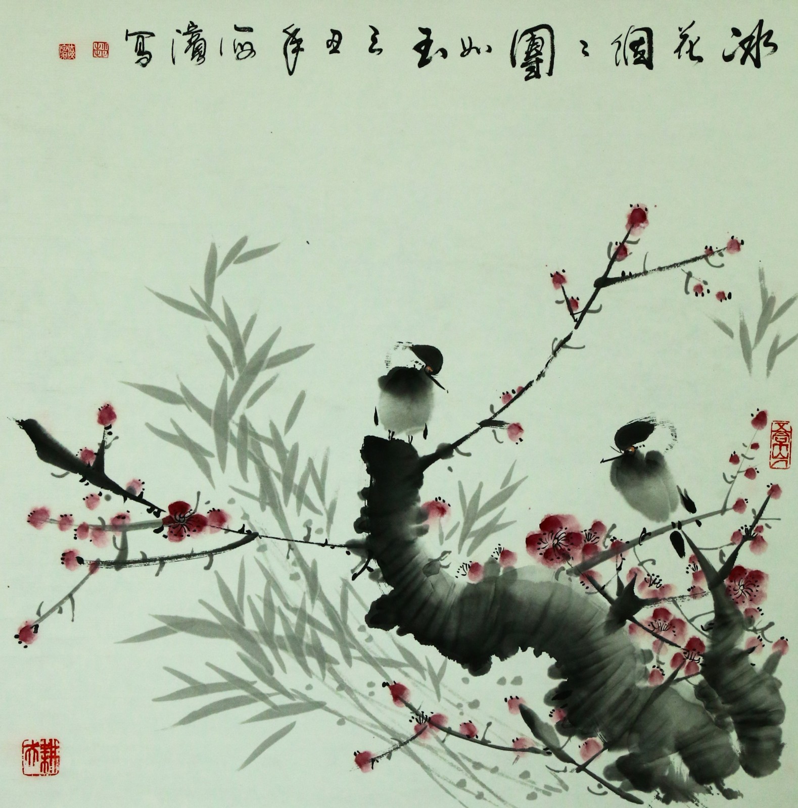 梅花小鸟四条屏(2)